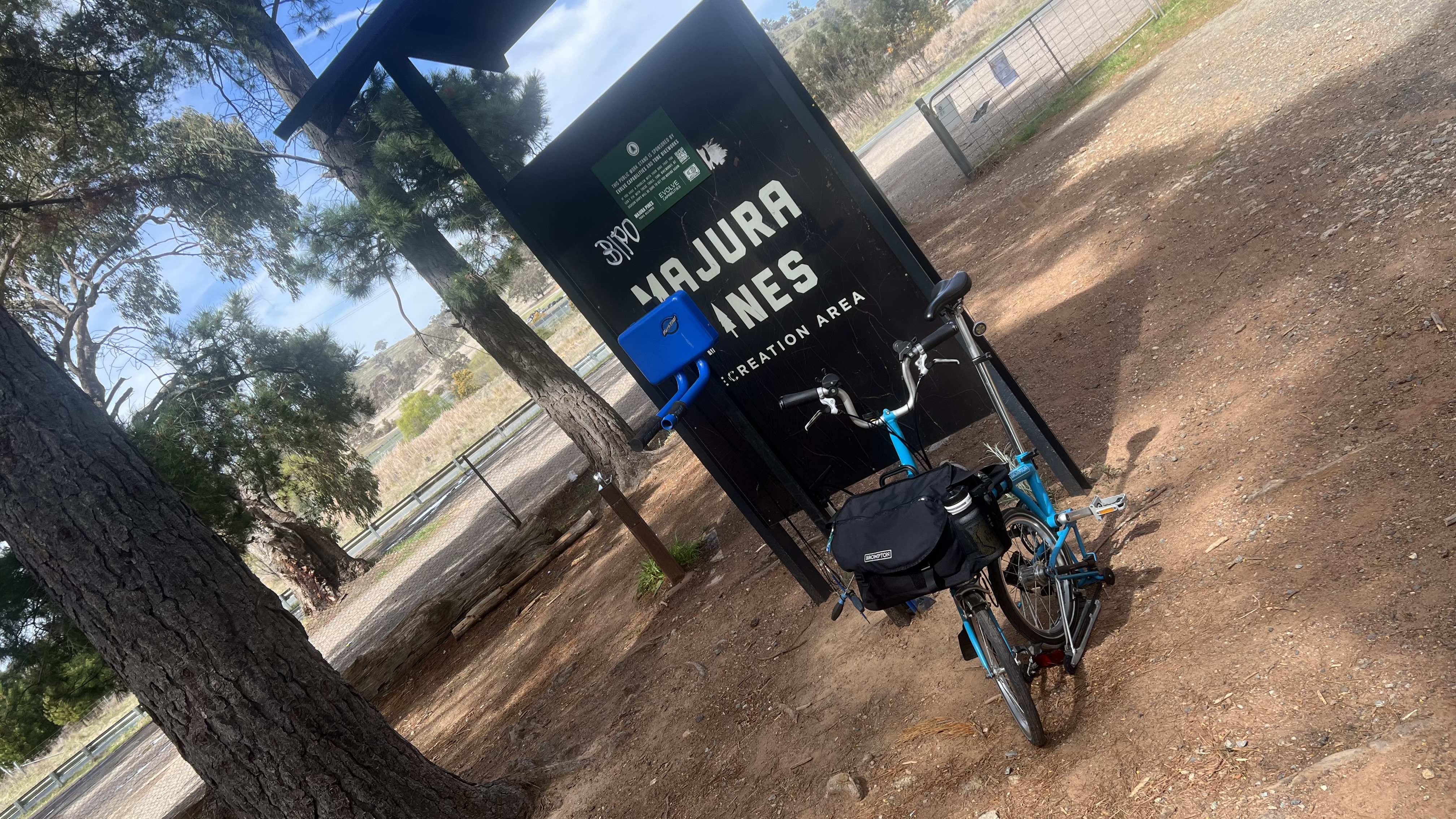 The next challenge was navigating around, and crossing the tram works, and heading to the morning tea stop. It was great to join up with Andrew and Lizzie with their cargo bike (made better with a Brompton in the cargo bay), just before the Oaklands Wetland and Reserve.