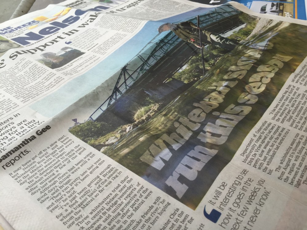The west coast of New Zealand and their love affair with whitebait is pretty amazing. Where else would the lateness of their run would make front page news? Where else would a town dedicate an entire festival to these tiny fish – with shops showing kids paintings of white bait. Where else would every restaurant have a white bait speciality? Where else would a hotel lift have whitebait artwork? Where else would you be able to get a glass of wine with the name whitebait (p.s. It goes well with whitebait).
