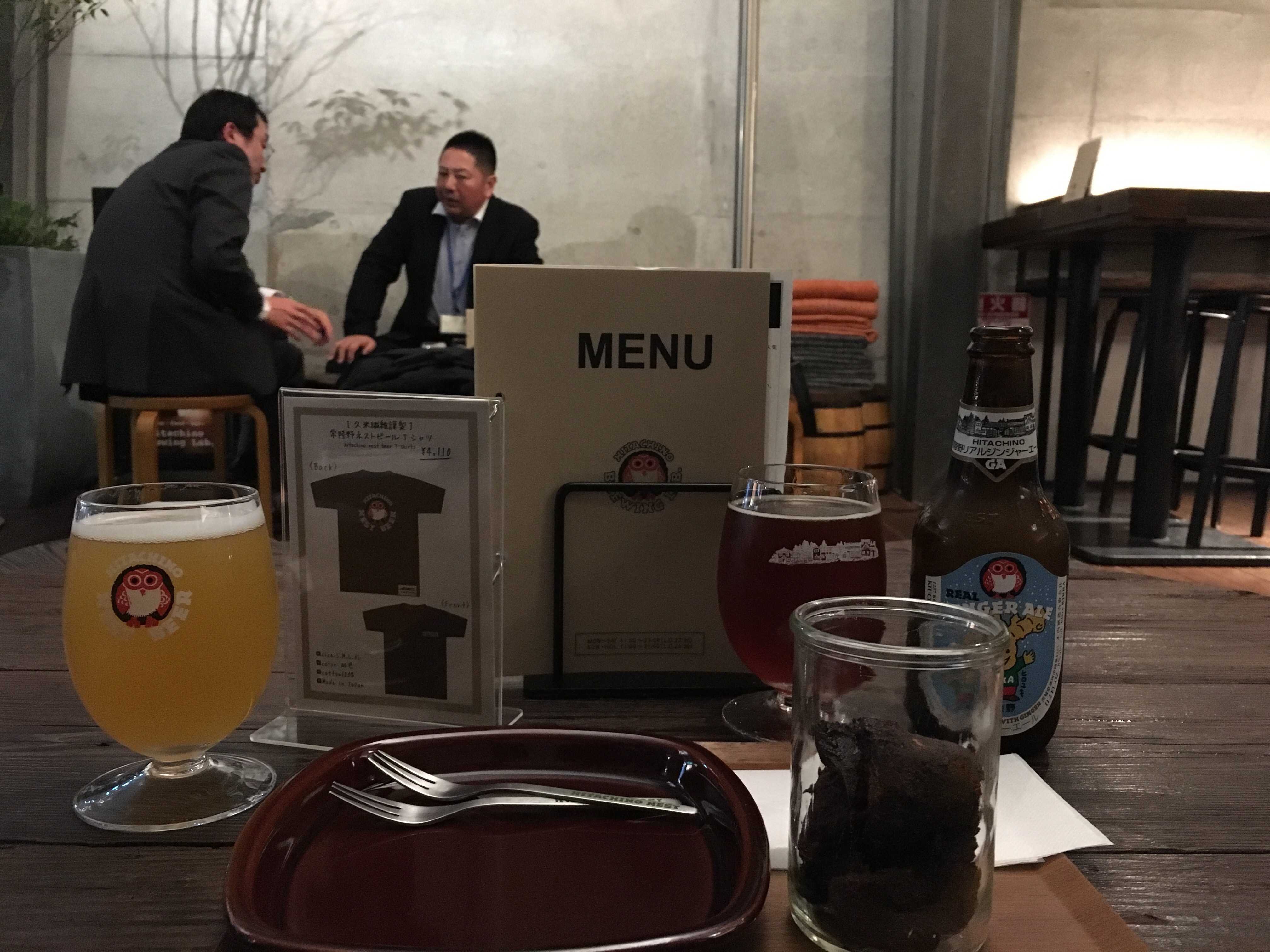 2016 - Japan Evening! Posted on April 28, 2016 by helenhmk End of the day… Beer, ginger ale and beef jerky in a former train station near Akihabara. Related
