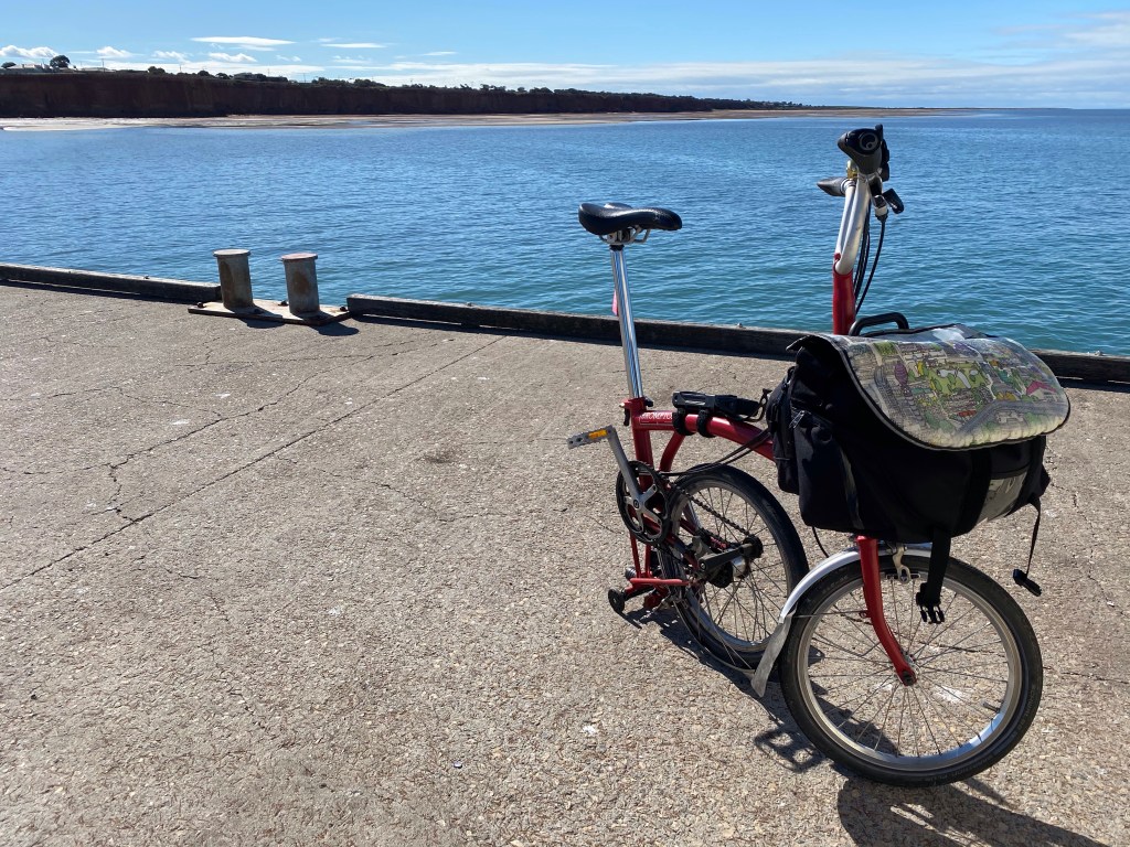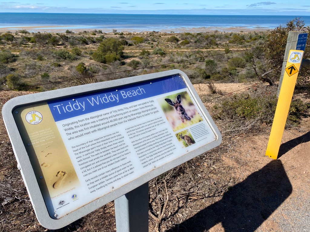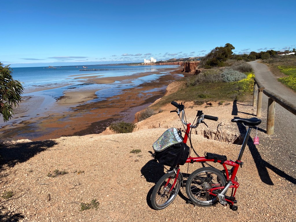 This morning, we packed the Brompton’s into the car along with some clothes and headed off to Tiddy-Widdy beach near Ardrossan. Before you start to complain… the name comes from the Aboriginal name of Titty Witty Titty – and here is the photo where you can read it yourself.
