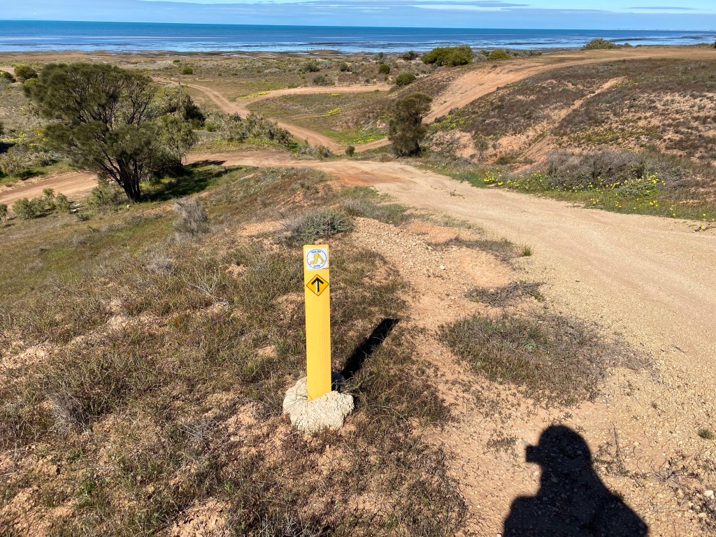 The ride is fairly easy, and the yellow markers along the trail at key turning points are well signed. There are many well known marked rides around the world (England…) which are not well signed. The Walk the Yorke trail itself is a mix of dolomite (its mined around in the area) and gravel. Some areas are better compacted than others. Meaning the trail is good for mountain bikes, hybrids, or if you have knobby tyres. Bromptons are pretty good too :)