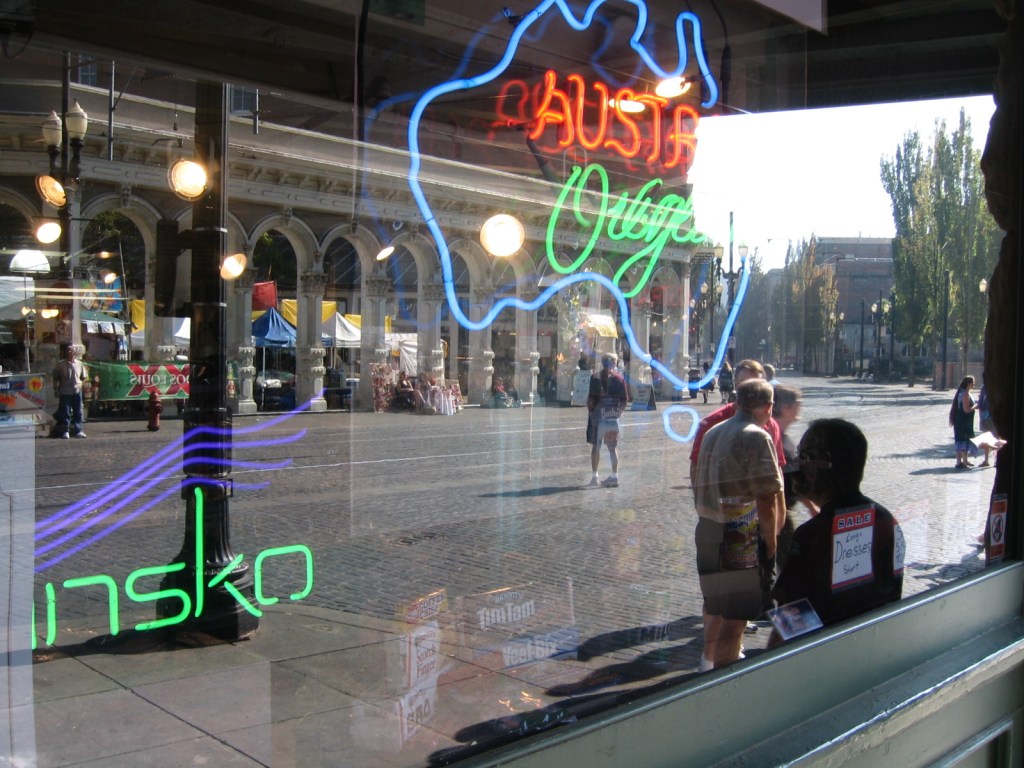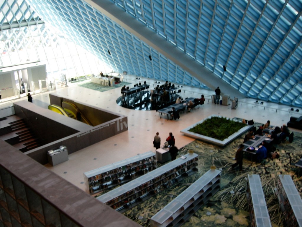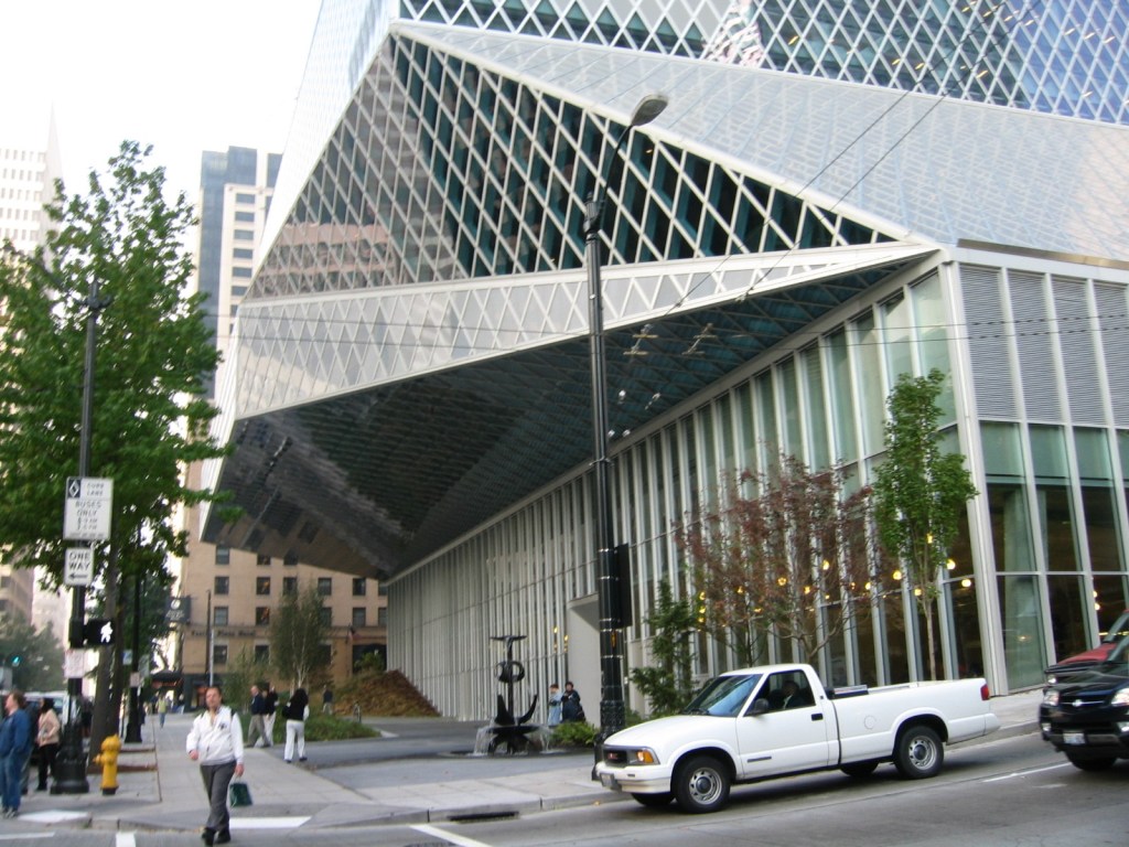 Yesterday, we also went to the Space Needle and Pioneer Place (their old downtown) and ran into an ex-South Australian selling cookies. It was good to hear our own accent, even though she has now picked up some of the Seattle/US mannerisms. As I set in this temple of a library, I can see through its latticed glass wall that the fog has cleared much early today! We were still foggy until well after lunch yesterday.