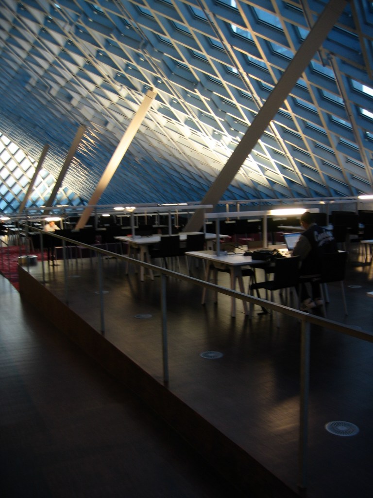 Well we’re back at the amazing public library. We went on an architectural tour of the library last night, it’s book spiral was especially amazing! We had dinner with some of the other people on the tour.
