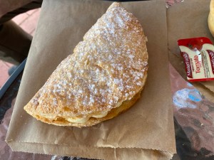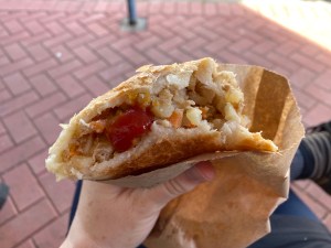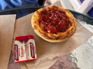We had pasties, sausage rolls, chocolate doughnut and apricot turnover and sat outside given the weather was delightful. While I generally prefer tomatoe sauce put in the centre of the pastie with a squeezey bottle the usual presentation is the sauce in the takeaway packet you squeeze together and put over your food. Pastie was great, as was the apricot turnover. For me the doughnut was a little more cake-y than I prefer. I’m generally not a fan of large amounts of cream – but the apricot turnover was fabulous – and a real highlight. Not too sweet… just perfect. If you are in the neighbourhood – I recommend it!