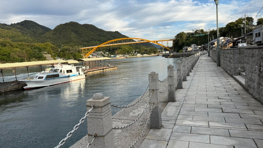 We made a brief stop at the cyclist station for a photo with the sign – we had missed it last time (it’s not we’ll sign posted) for the required end of ride picture before the final few kilometres to the city of Imabari.
