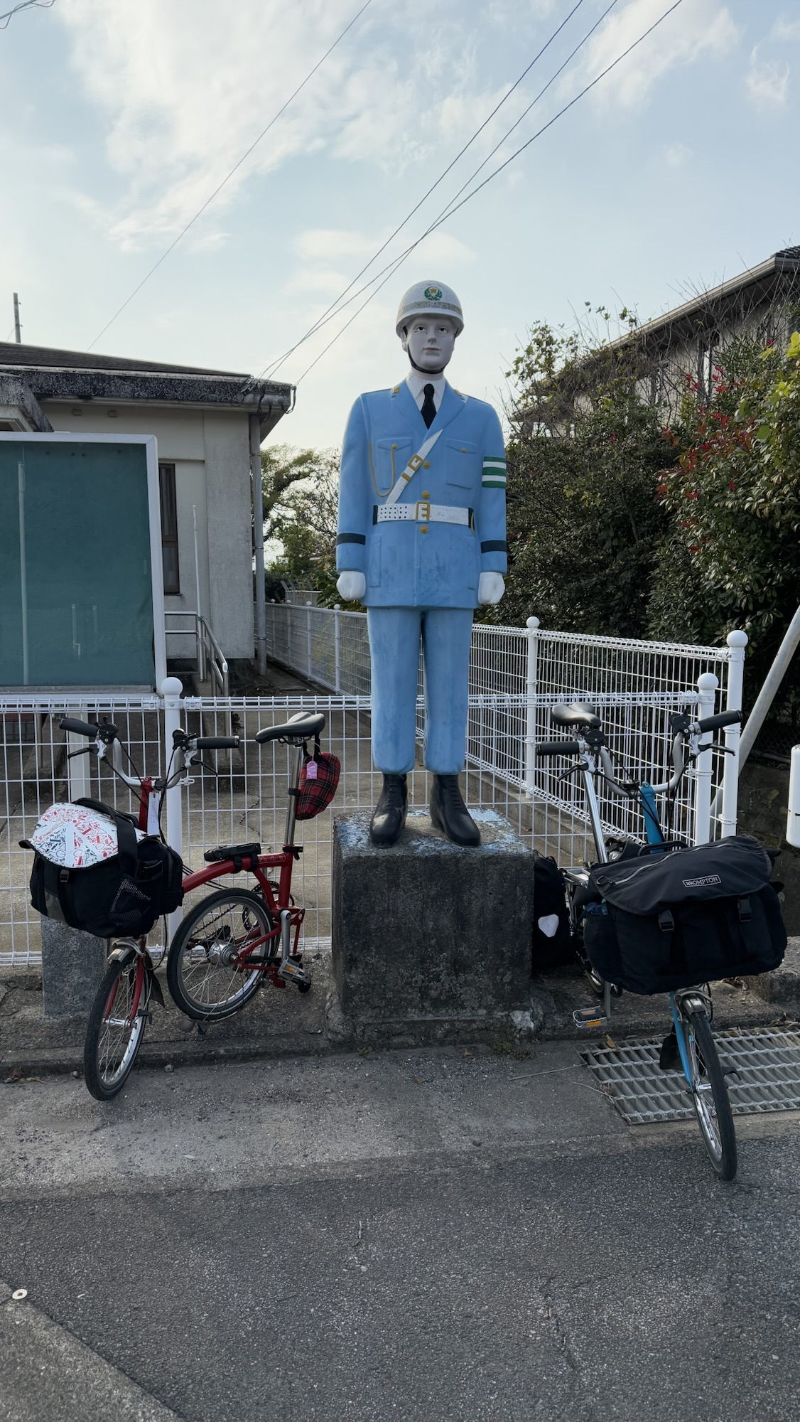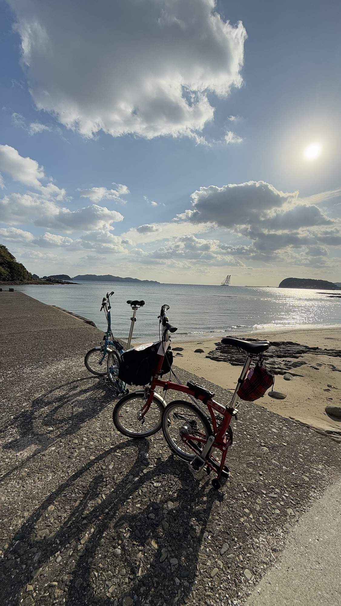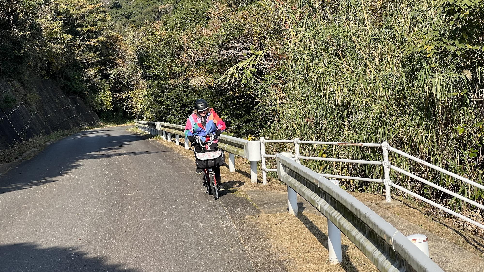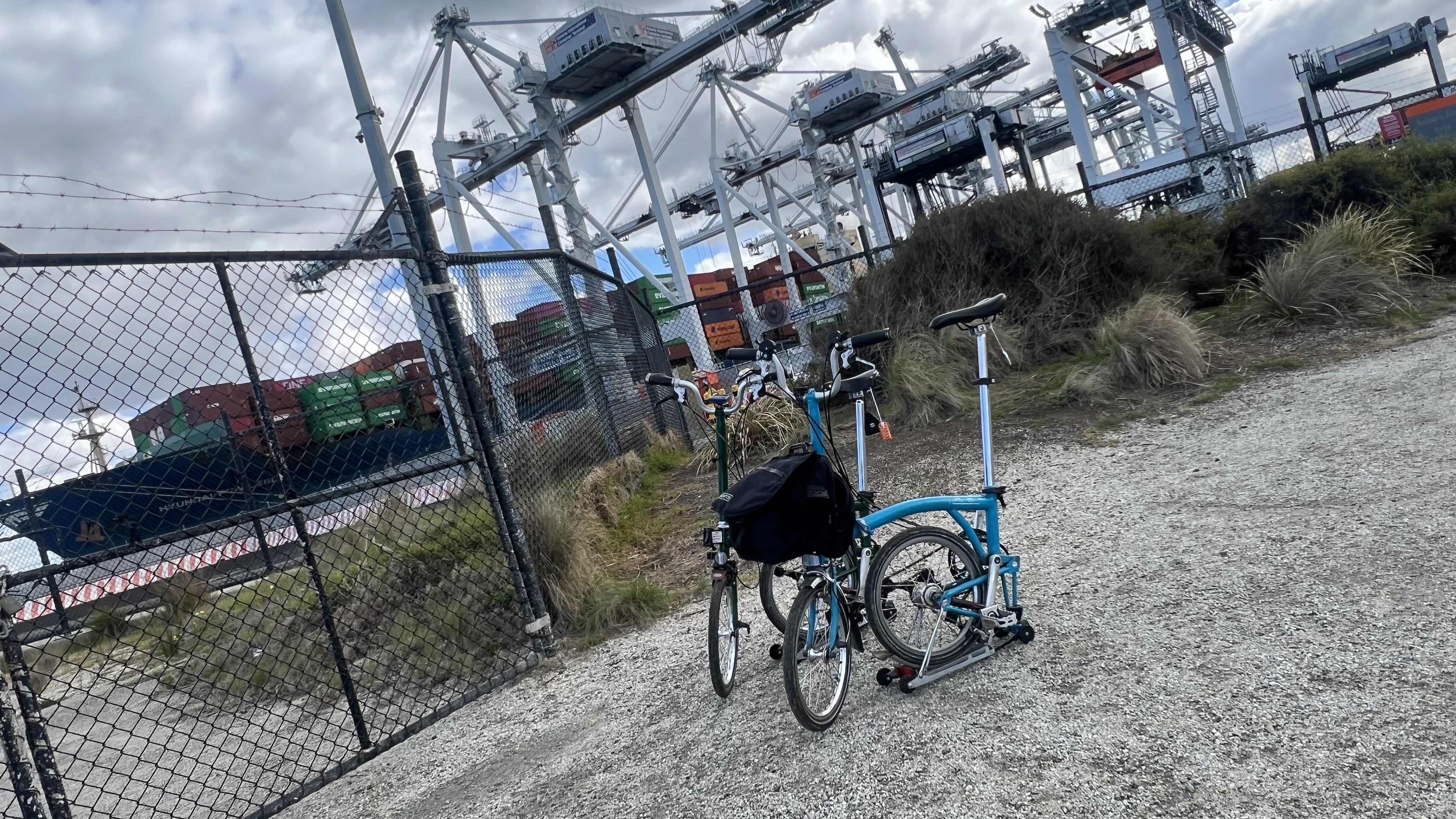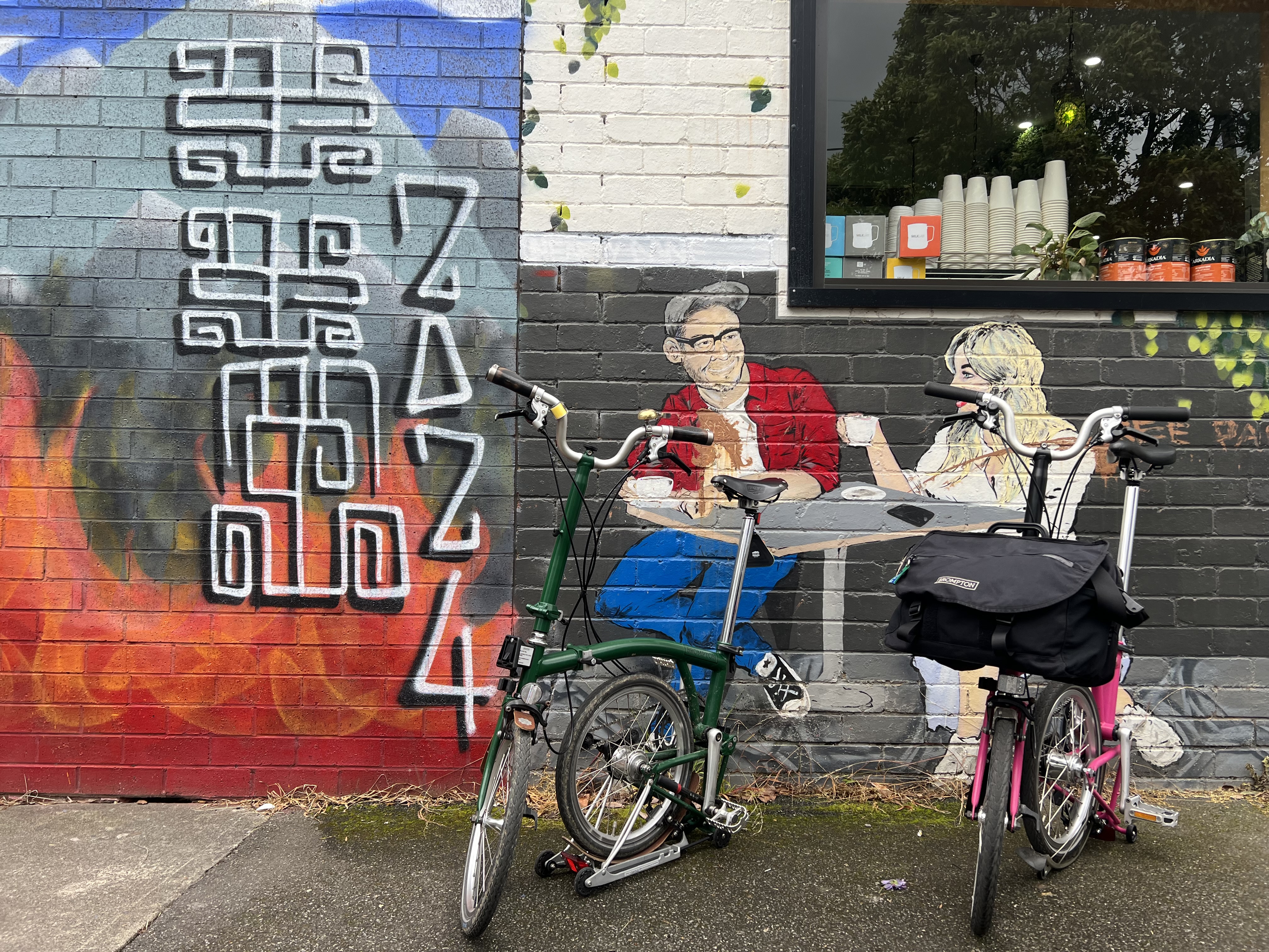 The morning tea break was fabulous. Huge thanks to Gail and Lizzie for bringing cake and Gail for the additional biscuits, which certainly fed everyone’s appetite up to that point. Top marks to Andrew for bringing along his camping stop and coffee making facilities – that is definitely next level commitment, and great use of camping supplies. There was the obligatory Brompton bike photo set-up on the bridge before we all headed back towards the city.