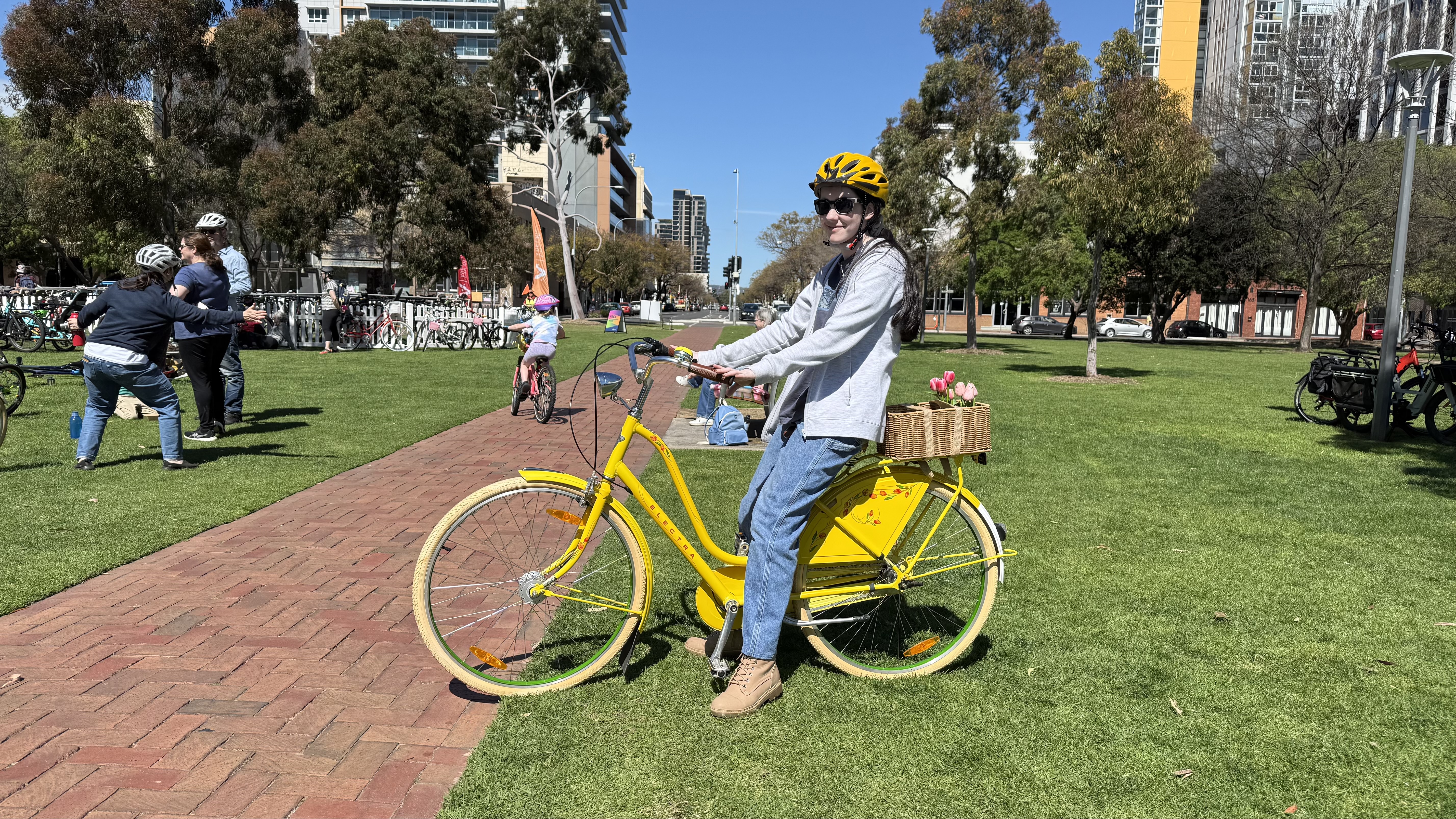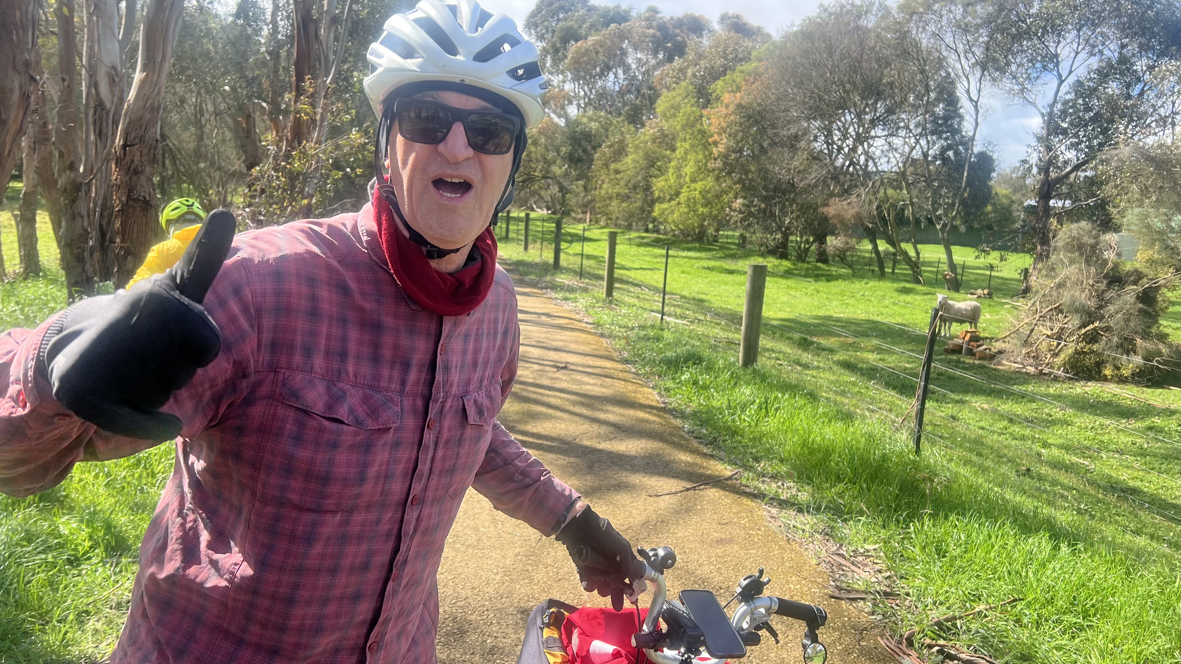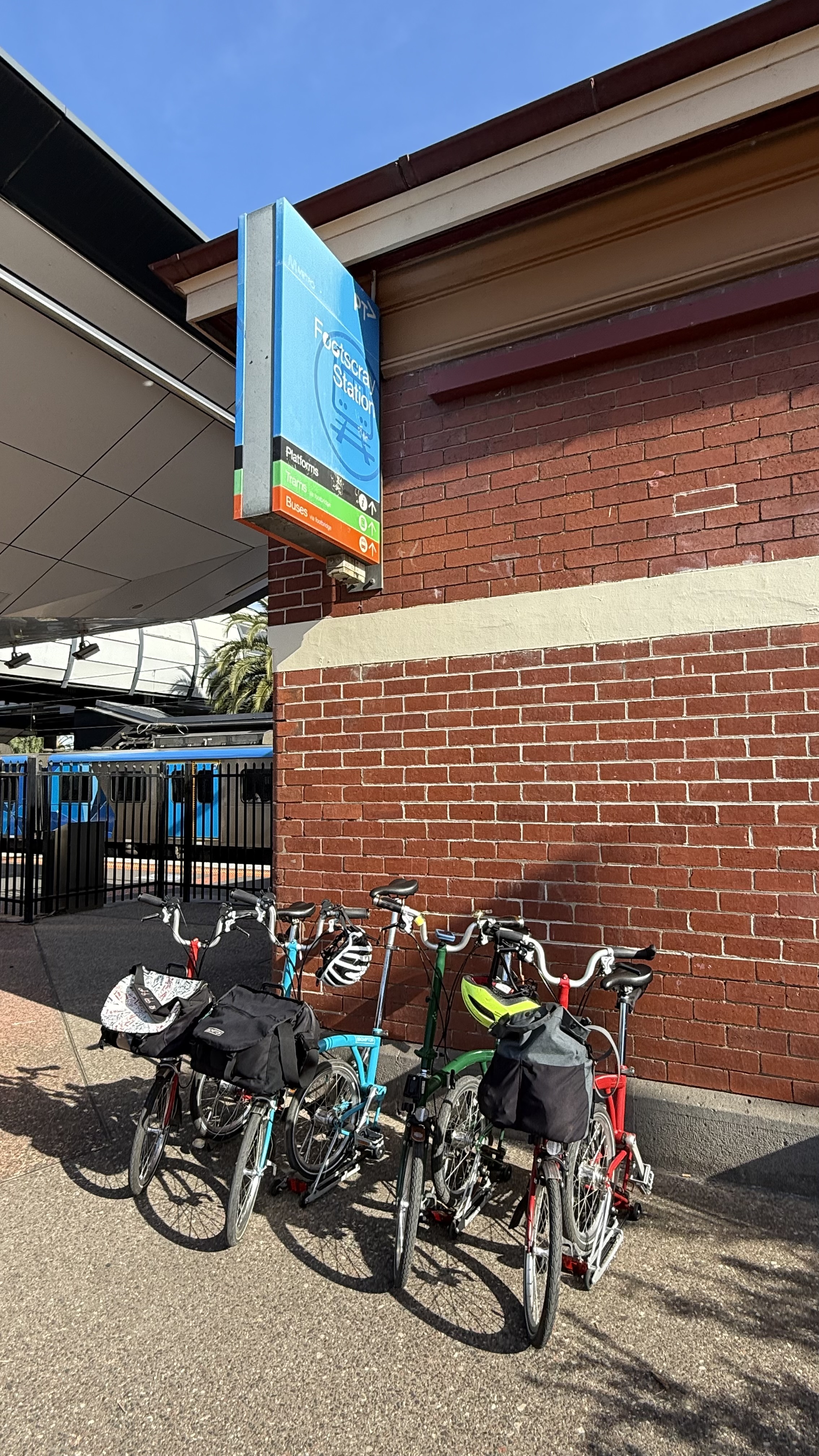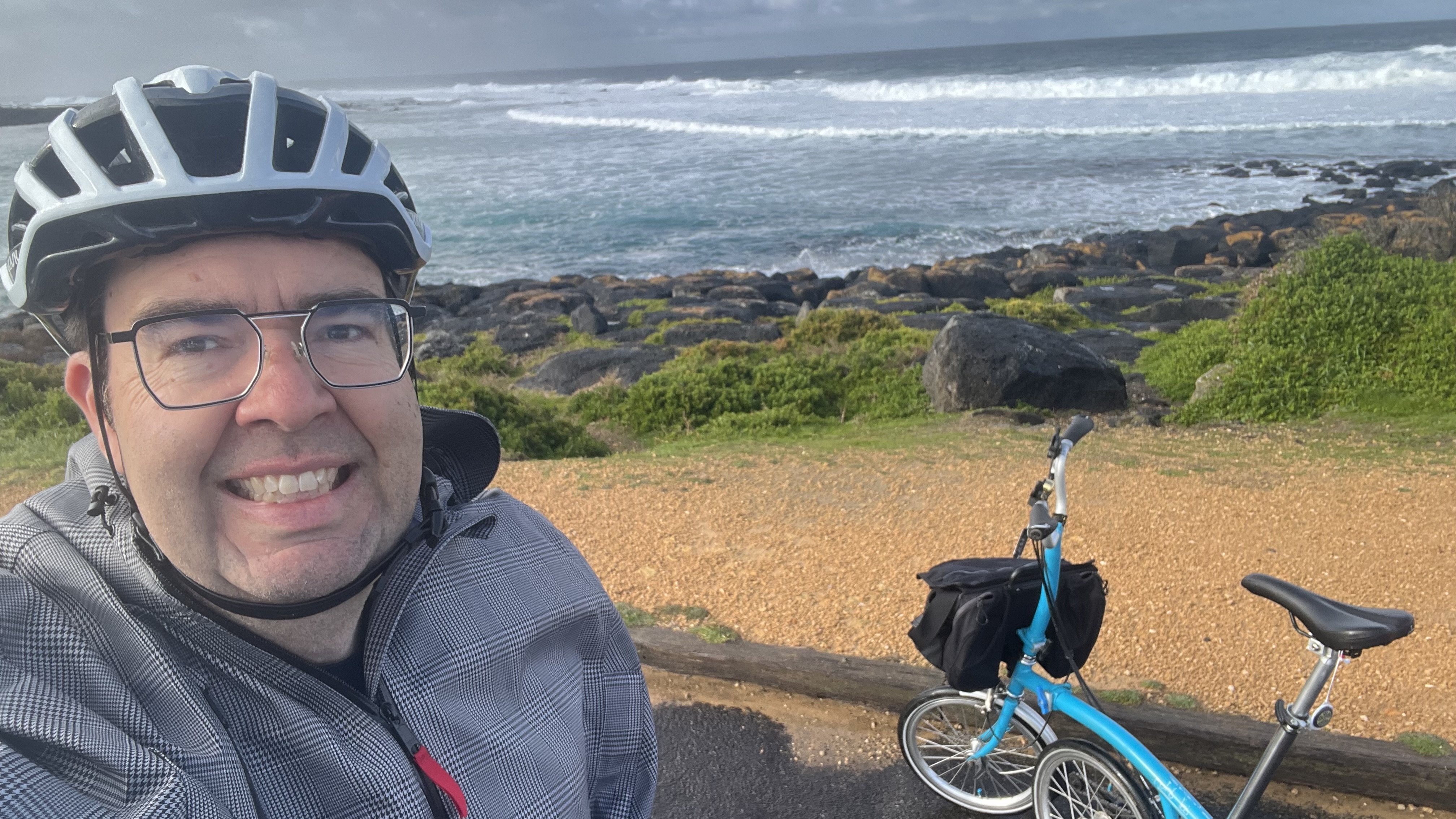 The next challenge was navigating around, and crossing the tram works, and heading to the morning tea stop. It was great to join up with Andrew and Lizzie with their cargo bike (made better with a Brompton in the cargo bay), just before the Oaklands Wetland and Reserve.