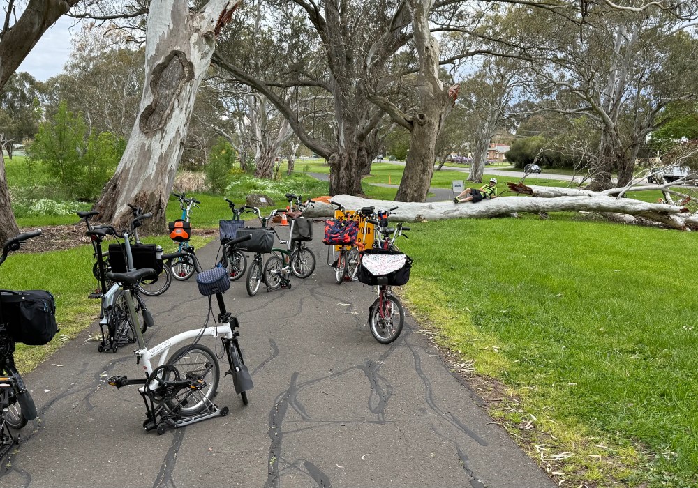 The Adelaide Brompton rides are largely a mix of planing which involve testing routes, finding suitable relaxed food locations for mid-large groups… and a bit of luck. This ride certainly relied heavily on luck – and great company, so thanks to all who came out.
