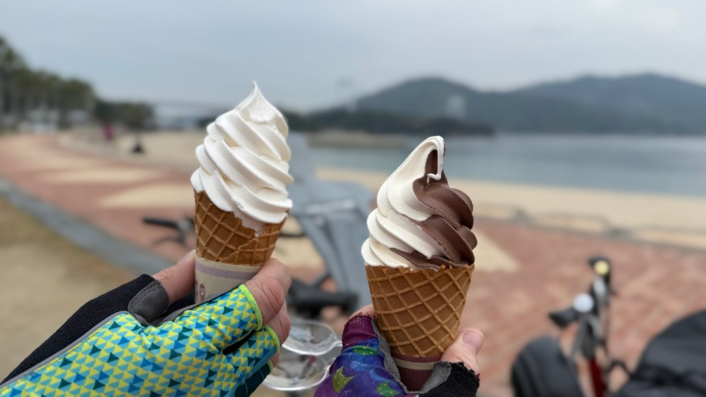 While cycling around the island is promoted – it’s not the same as the Shimanami Kadio. There isn’t always the space on the road and if you are not an experienced cyclist you won’t enjoy it. Although there were only a couple of spots we didn’t enjoy, thankfully they were short.