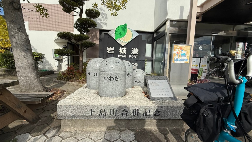 We made a brief stop at the cyclist station for a photo with the sign – we had missed it last time (it’s not we’ll sign posted) for the required end of ride picture before the final few kilometres to the city of Imabari.