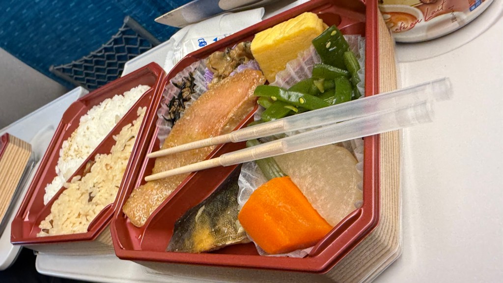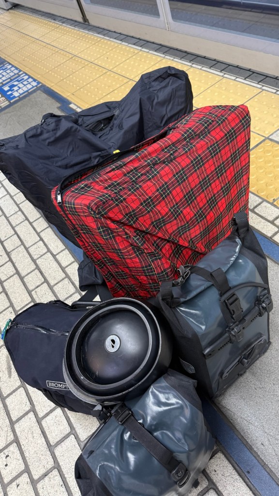 Once on board, with bikes and luggage stored behind us (yeah for booking the storage space – as you can’t guarantee there will be somewhere for large luggage), we enjoyed our breakfast bento in the time it took the train to get from Tokyo to Yokohama where our friend joined us with his bike.
