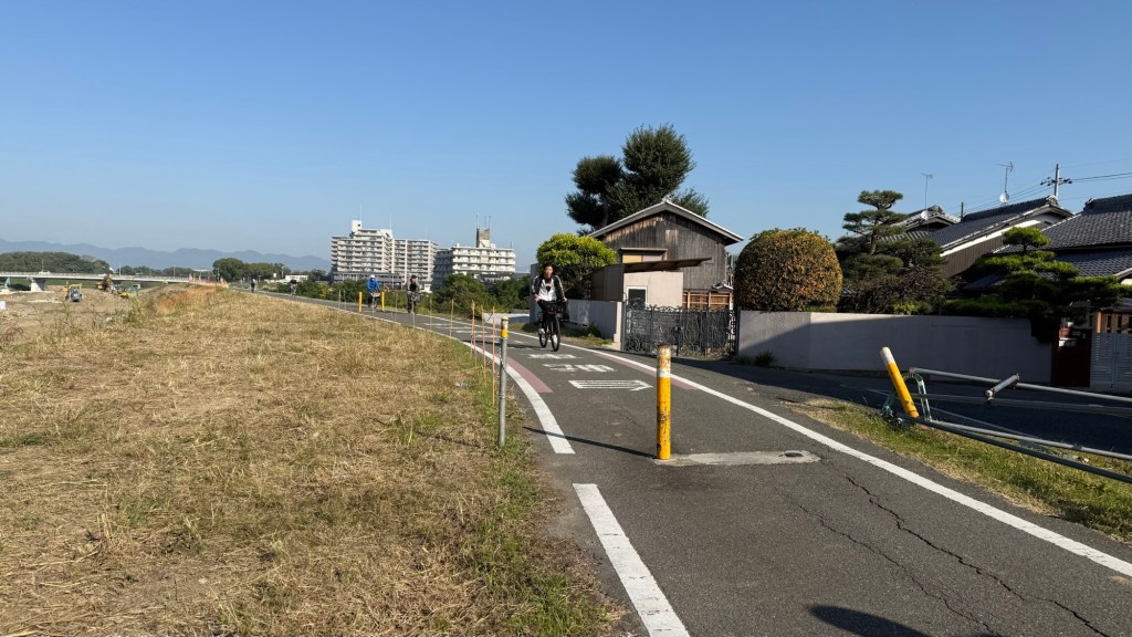 The first stop on the ride was the Sakura Deai Visitor Centre, which is the confluence of three rivers at Yodogawa Riverside Park. It’s been open since 2017 and is super popular with cyclists – of all kinds. It was a Saturday morning and we saw many road (team and track) bikes.