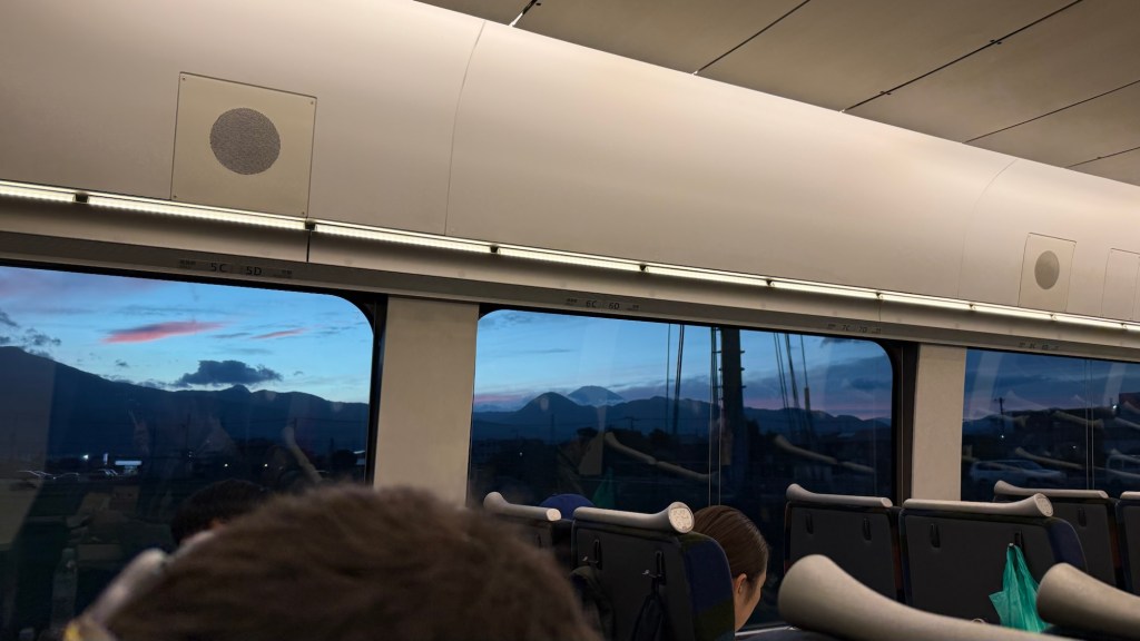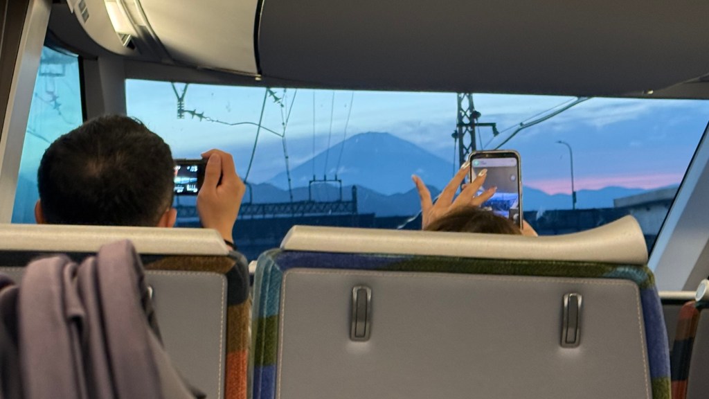 We are now on the Romancercar train back to Tokyo.. we followed our friends lead and turned the seat around. It was worth it so we could have a view of Mt Fuji as we ate our bento. Everyone wants to see Mt Fuji!