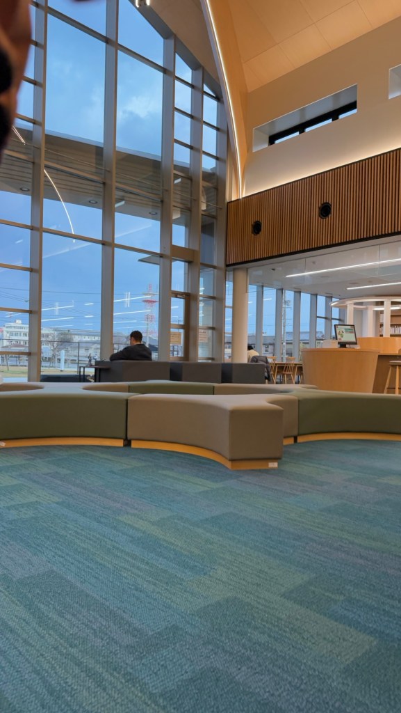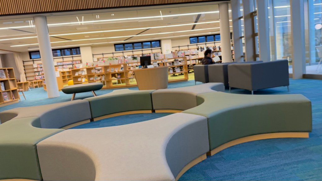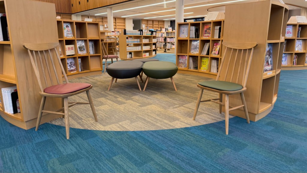 The shelving is modern (similar to other Japanese libraries). There was a lot more comfortable seating than I had seen in other libraries.