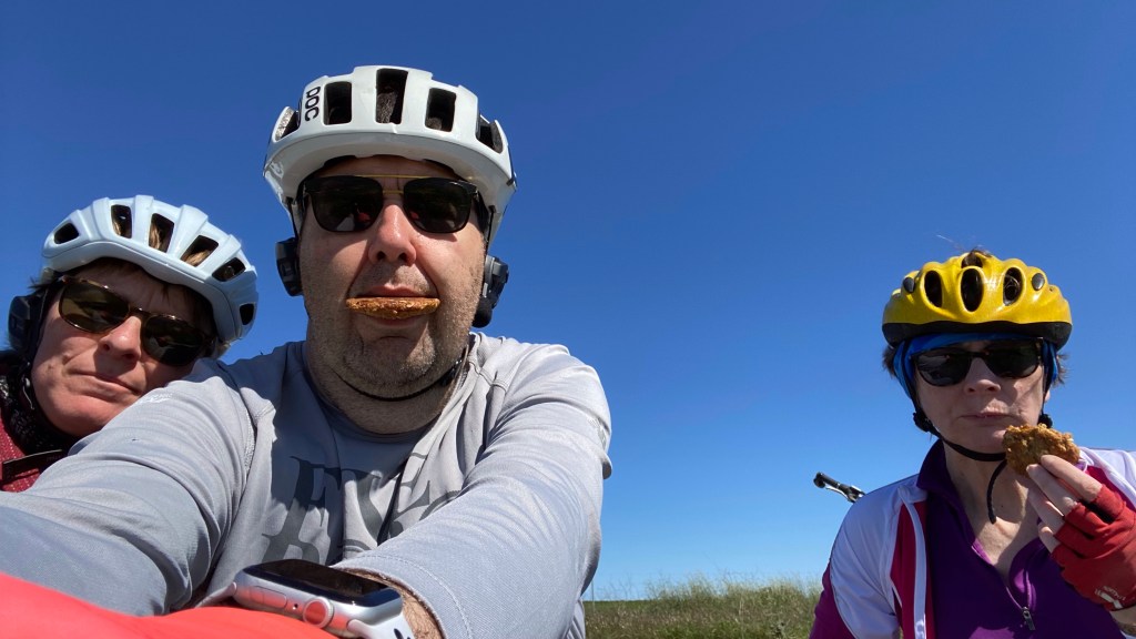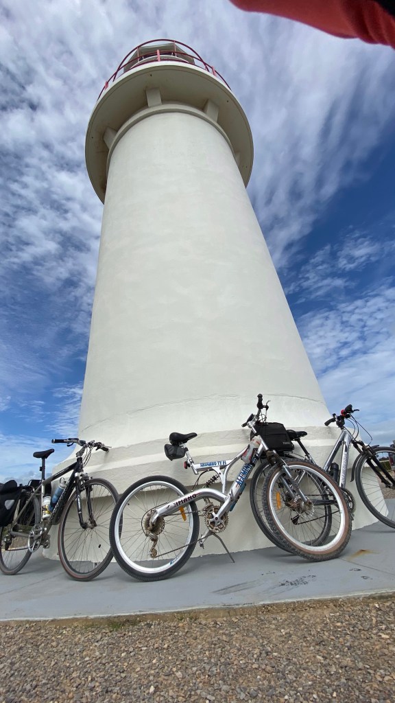 Today an Antarctic wind was blowing – good news was we rode with it behind us most of the way – bad news it brought with it random showers and some light hail!