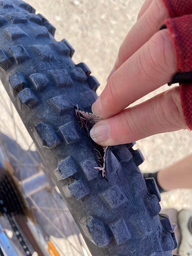 On this day, I put in practice lessons from M & D about riding into gravel. Go fast and don’t thing about steering – I reckon thats what they said and that what I did. I seemed to skim over the tops of the corrugations. I am not sure all the parts of my bike are still on it – but enough to get home were!.