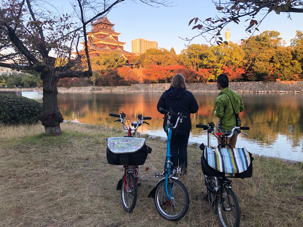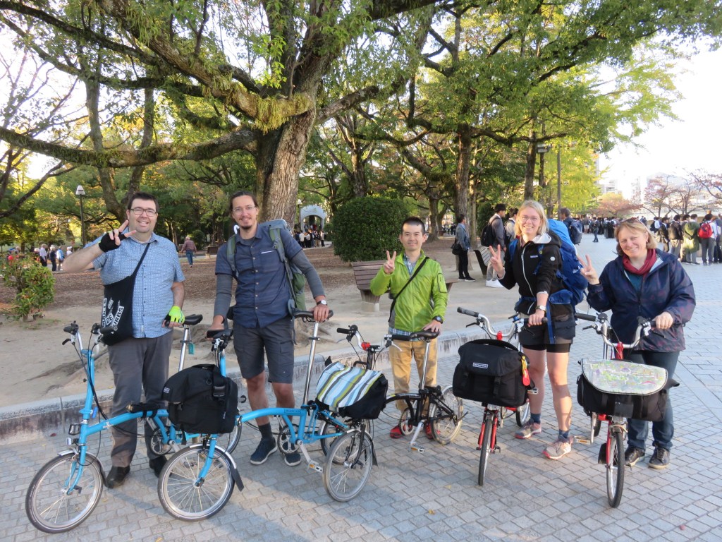 We arrived in Japan from London at Tokyo International Airport (HND) walked briskly through immigration and customs to the arrivals hall where we met our friend, Takero. We promptly pulled out our pre-prepared cycling luggage – two Brompton Bags and two small panniers and our bikes ready for our flight Hiroshima.