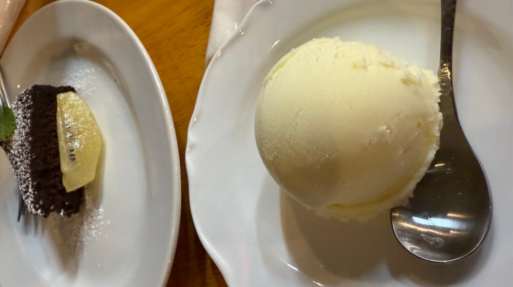 The pizzas themselves were perfect, and great flavour of the toppings. Four cheeses include a blue cheese (oh!). To top it off we had dessert – the ice cream at the perfect amount of citrus… ah. It was a perfect end to a great meal.