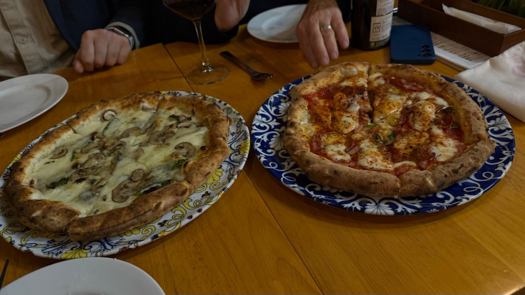 The place featured a traditional wood fired pizza open inside the restaurant. While the menu was in Japanese we used the translate functions on our phones to decide on: