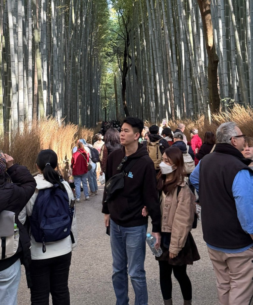We got to Arashimyama.. and while we had previously been to this location at least three times – we had never seen so many tourists in one spot – ever. The main stretch of the town with all the shops was packed, so much people were walking on the road. When you hear there are a lot of tourists in Japan – I think they are all in this spot. It was pretty unpleasant. Thankfully we were on a bike and we could follow a car which was creating space… until we turned off where there were less tourists.