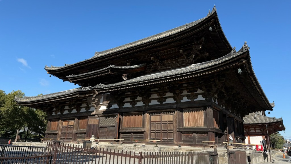 We stopped to look in Todai-Ji Temple – which is the largest wooden structure in the world, and was last reconstructed after a fire in 1567 (third one since the original was built when it was the capital of Japan. here there was a lot of tourists – when cycling you tend to forget how these sites can be. If you’ve never been to Nara you are lucky to be aware of the deer that live here and like to be fed crackers, and will attack peoples bags if they can smell them. We cycled around the upper sections of the park.. before heading into the main tourist shopping strip, where we enjoyed a fresh mochi (rice cake) from the place which is super trendy on tic-tok, before heading to check in to our hotel.