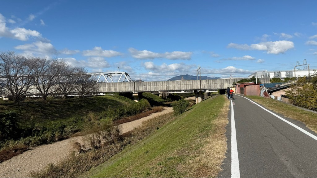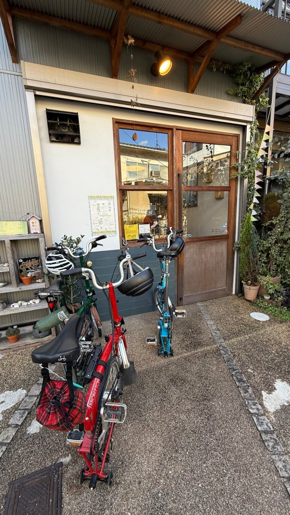 The first stop on the ride was the Sakura Deai Visitor Centre, which is the confluence of three rivers at Yodogawa Riverside Park. It’s been open since 2017 and is super popular with cyclists – of all kinds. It was a Saturday morning and we saw many road (team and track) bikes.