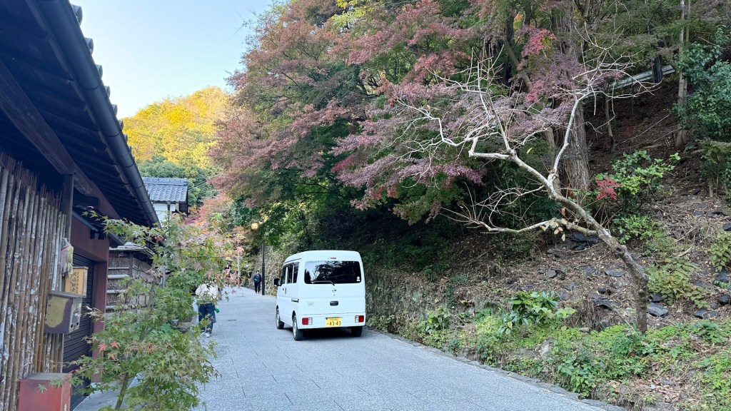 After we went up an old style road, stopped for a coffee and took backroads towards the centre of Kyoto to pick up bags and go to the train station for the next location.