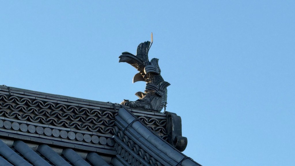 Once the tyre was replaced and we were back on the road, we stopped off at the Nara Palace site. This was was one of the sites of the capitals of Japan, and from AD 710-784 where is then was relocated. The site itself was approximately 1km square, and previously featured a variety of buildings and compounds for different purposes. Many of the buildings are being recreated using traditional Japanese skills and craftsmanship, based on records and archeological excavations of the area since 1959. We had a look the the Imperial Audience Hall.