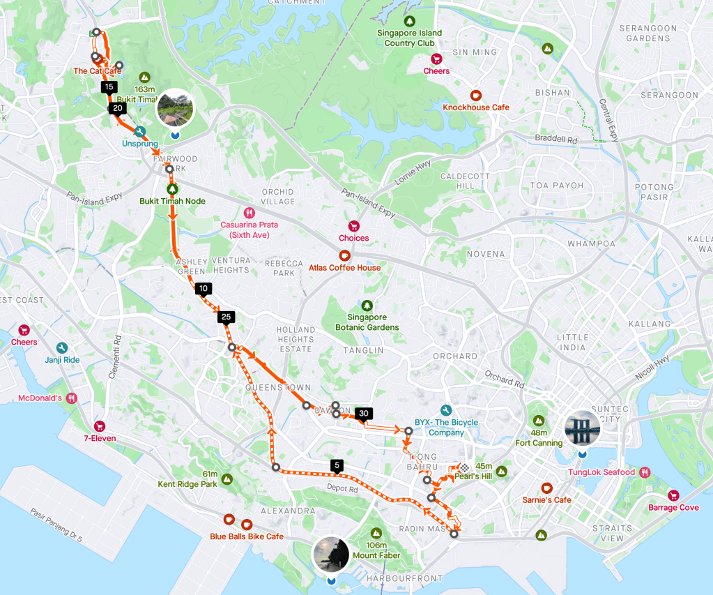 This route was a little under 20km, and included a ‘tricky’ shortcut back to the hotel on Singapore’s excellent MRT. The route is available on Strava.