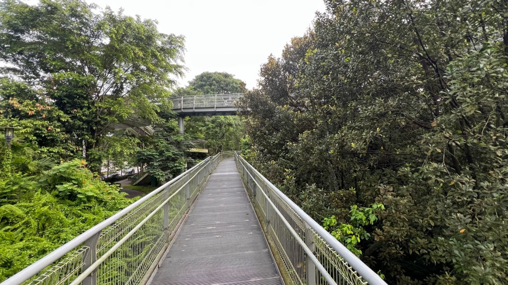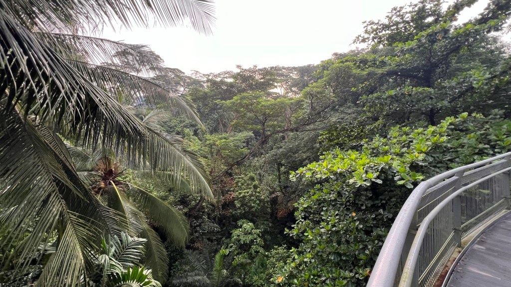 From Tiong Bahru we joined the Alexandra Canal Park Connector and then the Alexandra Park Connector to Labrador Park. The first unexpected, but delightful, stop was the “tree top walk” in Southern Ridges park. Perhaps, if we had examined the map, we would have noticed that on the other side of the road was a bigger garden with a range of interesting features. So if you do this ride, you can report back to us on what we missed out on at Hort Park.