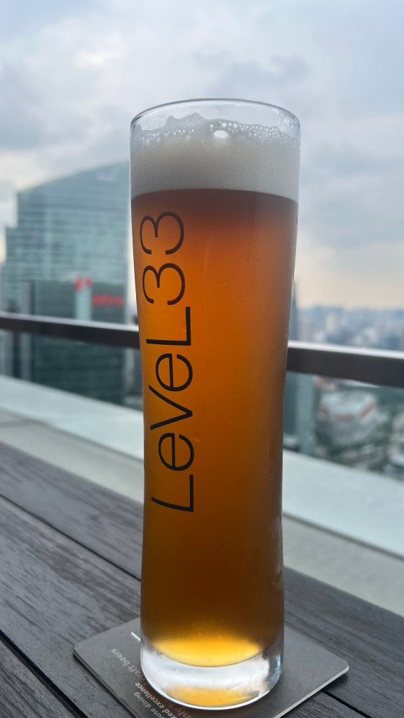 We needed a lovely drink to follow this lovely meal. So, we made our way into the Long Bar at the Raffles Hotel and had a Singapore Sling and a Sakura Sling (only one each!) and then chased that a craft beer from the fantastic LeVel33 the worlds highest urban microbrewery. This is where I’ll be tomorrow afternoon.