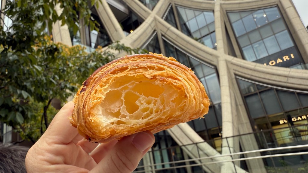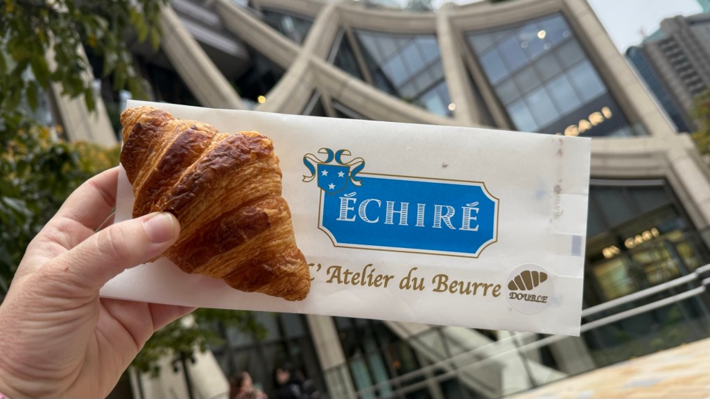 By this stage we were feeling confident – and continued our route to Main Mono in Shibuya near Yoyogi-Uehara station. The bakery is the work of a Japanese pastry chef – who trained and worked in Paris. Walking inside you can just smell the butter… ah. they have a variety of bread products on sale… so course we decided to buy three and eat them inside with a pot of tea. The croissant was delicious.. as was the persimon danish and the keema curry roll.