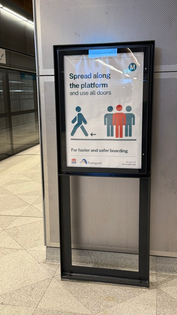 The fastest way was via train to Central and metro (new driverless) train out to Crowsnest. The stations really do remind me of Tokyo train stations… long escalators… high ceilings… impressive public infrastructure. Given SYD is a major capital city it certainly is a worthy investment for the long term. Thankfully the speed of these trains ensured we honour booking on time.