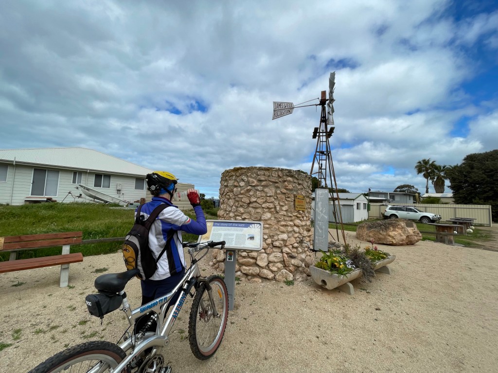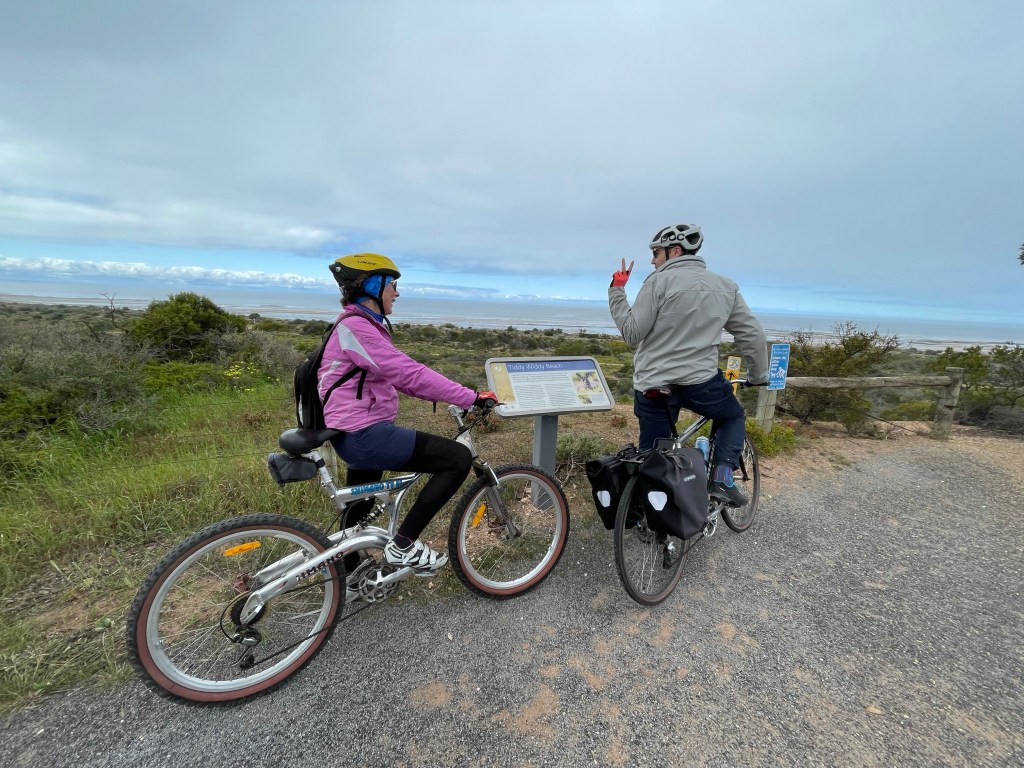 In preparing for the ride we have been to this coffee shop in Ardrossan a few times… and it’s pretty good. After lunch Vivienne and I push on to Rogues Point. As you might of expected it rained… that annoying light type of rain which is damp enough to annoy you but not too heavy.