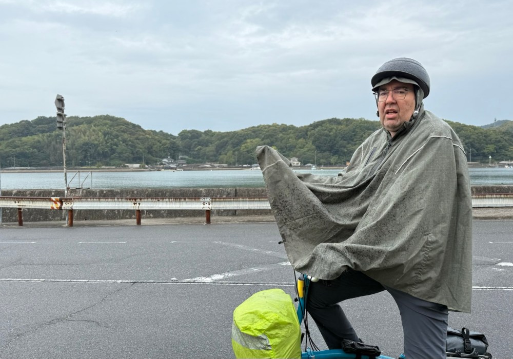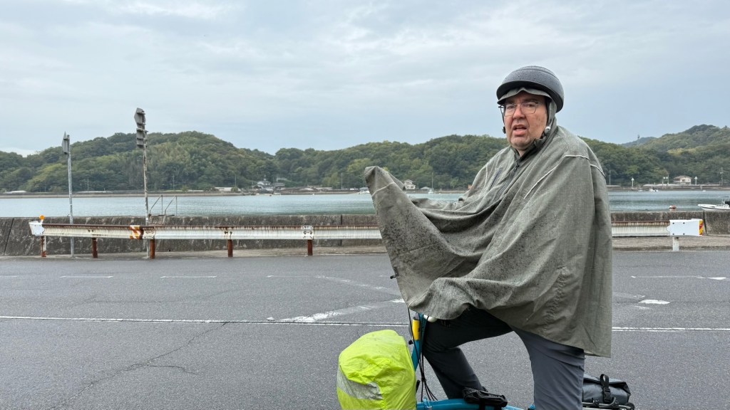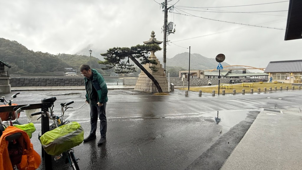 But hey it’s only water… and we have to ride in it to get where we need to our accommodation on Ikuchijima Island. The morning rain was light (more annoying and lingering), while after lunch it was persistent.