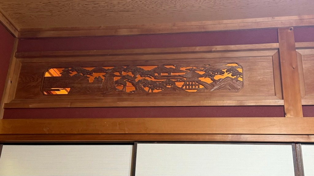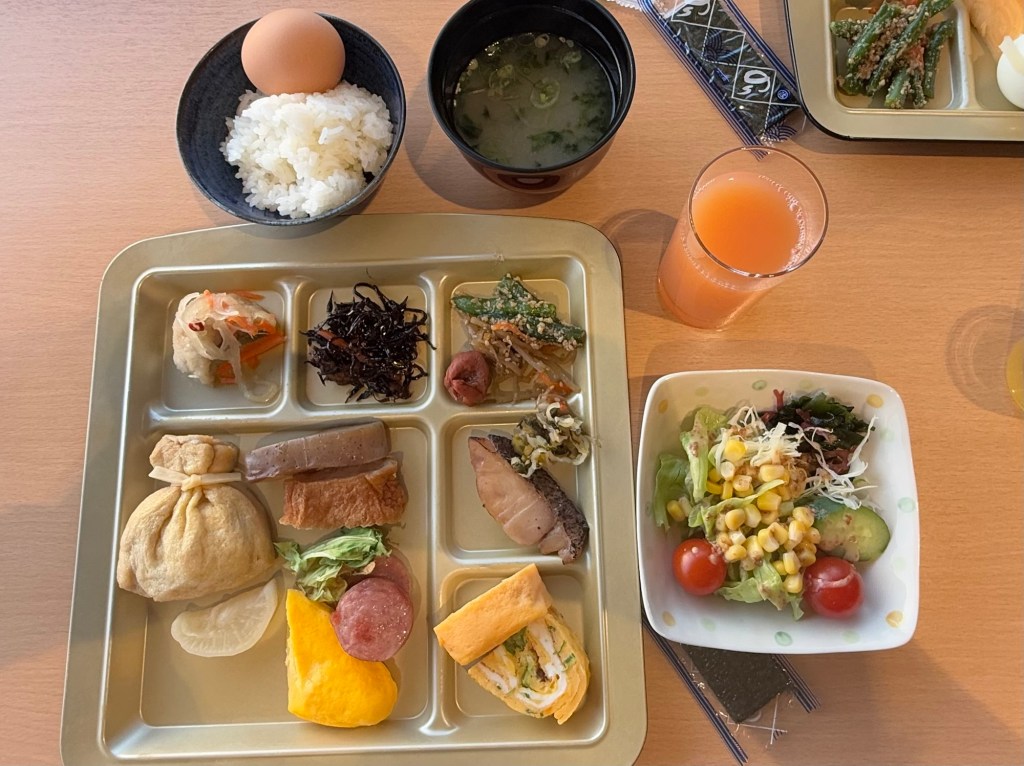 Kym had been doing research the previus night for a place to stop for lunch – and found Fuu, which means wind. It specialises in okonomiyaki. They had different styles available (Kansai/hiroshima and green onion style) and you could choose the style of toppings. We also chose to have miso soup.. given the ind was cold. The food was the perfect antidote for being on the bike for the morning. While we were the first ones in – it really filled up with the local workers for the lunchtime crowd.