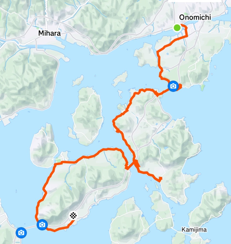 This is the third time Kym and I have done this route – and it is a true delight (even despite the wind). The scenery.. the light and the way it transforms how the mountains around the region look.. even despite the wind and rain it was truly worth it… and so glad we made the effort to do the ride again. There are always things we think – if only we had more time to explore the other islands.. or places along the way (as there is quite a lot here if you choose to explore) we have well and truly left something for next time 🇯🇵❤️🚲😉